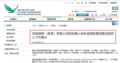 被谴责及罚款2700万 监管踢爆招商证券香港三大罪状