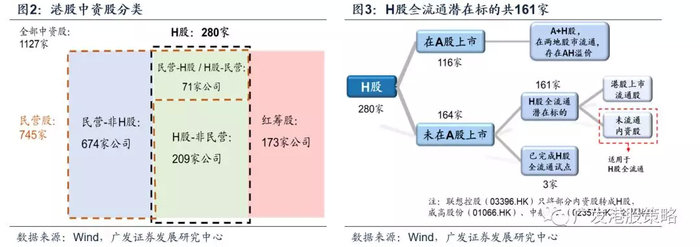 什么是H股?截至目前,港股中资股共1127家,按公司类型不同,可分为红筹股(173家)、H股(280家)与民营非H股(674家)(图1)。H股公司在内地注册,业务在国内,与其它两类中资股最大的区别在于,H股公司仅将部分股权拿出在香港发行,而剩余内资股份不在香港市场流通。