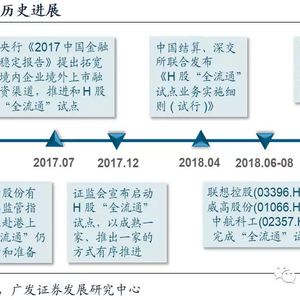 2017年底,证监会宣布对H股“全流通”进行试点。在联想控股(03396)、威高股份(01066)、中航科工(02357)均顺利完成试点的背景下,本周证监会正式宣布全面推开H股“全流通”改革。