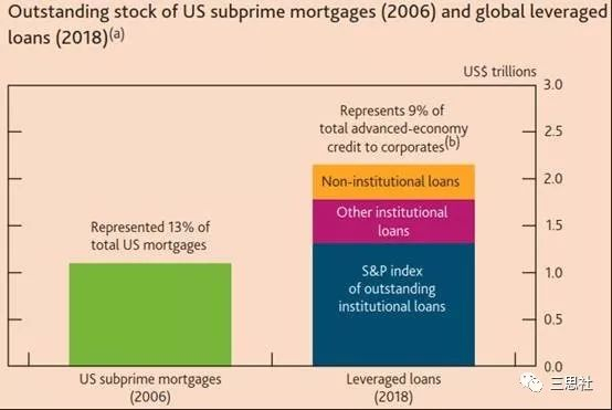 根据英国央行的数据,2018年的杠杆贷款规模已接近2006年的美国次贷。