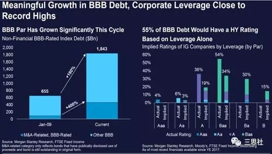 根据大摩的研究,如果仅以负债率为标准,45%的BBB级债券将从投资级调低至垃圾级。