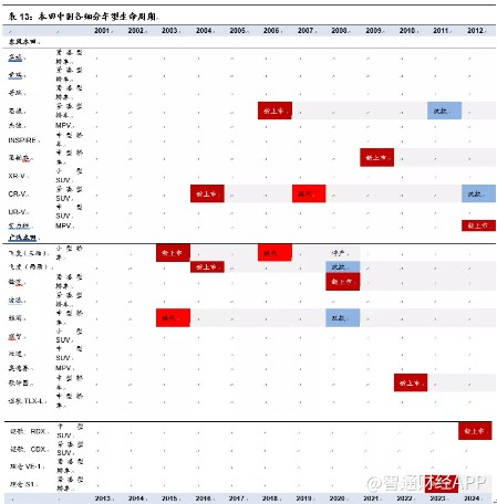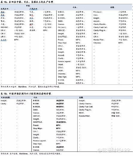 本田在中国地区的布局与丰田较为类似,与大众相比同样在紧凑型SUV领域较为薄弱、大中型SUV和大中型轿车领域产品缺失。尤其是广汽本田在核心细分市场紧凑型SUV产品缺失,同时也没有大中型SUV与大中型轿车等车型。