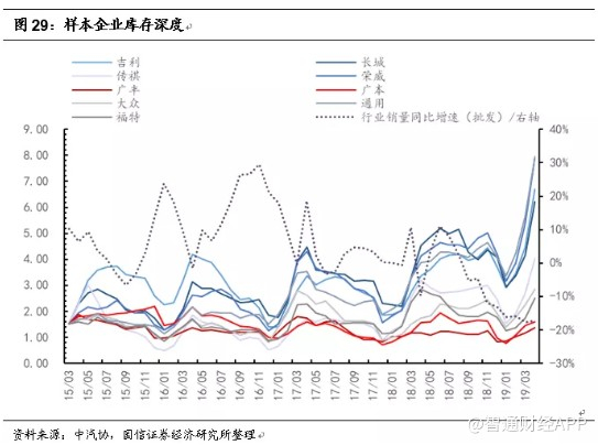 我们主要基于样本企业的库存深度以及新车终端折扣两个指标进行分析。