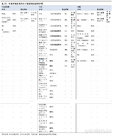 在最核心的紧凑型SUV和紧凑型轿车领域丰田的车型布局相对大众还有较大的提升空间,而丰田在小型/紧凑型轿车的产品储备十分丰富。紧凑型SUV也有HARRIER等核心车型尚未导入。