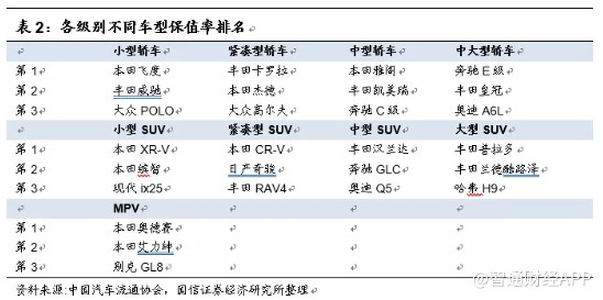 保值率:终端折扣持续加大背景下,日系保值率稳步提升,丰田和本田的保值率最高
