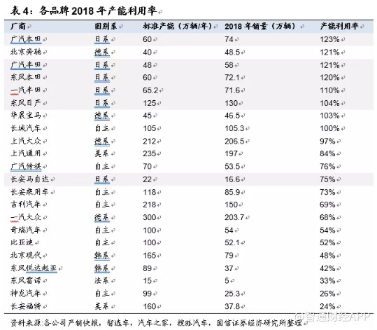 第二,2018年行业乘用车销量2258万辆,同比下滑5.8%,四个合资公司是在弱市下达到极高的产能利用率水平;