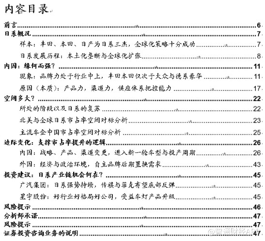 我们认为日系品牌的经营理念整体比较谨慎和稳健。不管是对渠道还是供应体系的把控能力均较强,整体经营理念是把上游的零部件供应体系和下游的经销商渠道纳入到整车厂进行一体化布局和管理。从长远视角来看,优秀的汽车制造商需要拥有同步研发同步成长、供货稳定且质量可控的零部件供应集群,需要拥有自身盈利能力强,品牌忠诚度高的经销商渠道。类似于丰田等企业对核心供应体系交叉持股,经销商库存水平较为合理且终端折扣较低,从制造端和销售端维持良好的一体化管理。若是基于短期目标长期压库将会造成经销商库存高企,资金占有量大,终端折扣提升,经销商盈利能力下降,消费者前期购车保值率下降,整体品牌力下降等。若是基于经营压力对供应体系长期大幅度多频次压价或者频繁变更供应体系将会造成产品存在质量隐忧,供应体系无法长期同步研发或是稳定供货。