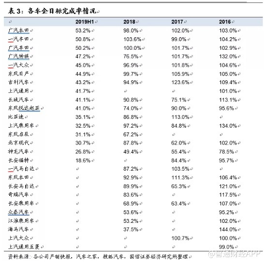 丰田和本田的历年目标销量和实际完成率匹配度较高,尤其是在2019年上半年行业大幅度下滑,各制造厂商均未完成上半年规划的情况下,丰田、本田基本完成甚至超额完成上半年销量目标。