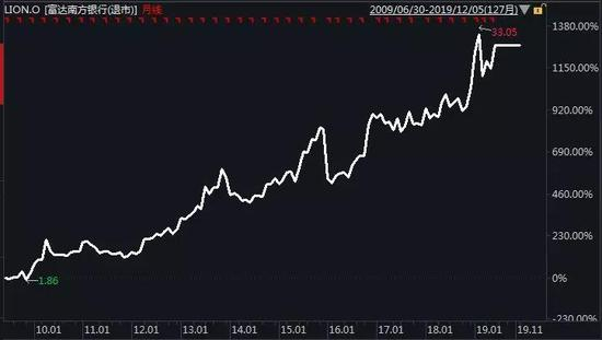 排名第二的是fidelity southern(富达南方银行),涨幅同样超过250倍,公司全资控股富达银行和LionMark保险公司,主要为大城市商业零售客户提供金融产品和金融服务。