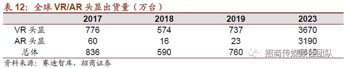 目前VR产业链仍处于成长期。从全球市场来看,赛迪智库的数据显示,2019上半年全球AR/VR头显设备出货量达130万台,同比增长27.2%,其中国内VR/AR设备总出货量为27.5万台。主流厂商如Oculus、HTC、微软、小鸟看看、大朋、创维、陆续密集发布新头显。华为于9月26发布VR Glass新品,可以配合5G手机实现超高清视频互动与观看,未来有望引领VR终端市场,加速硬件渗透。受益于头显产品的迭代加速、内容平台的进一步完善以及行业端用户需求的快速增长,预计全球2019全年AR/VR头显设备出货量将达到760万台,同比增长29%。