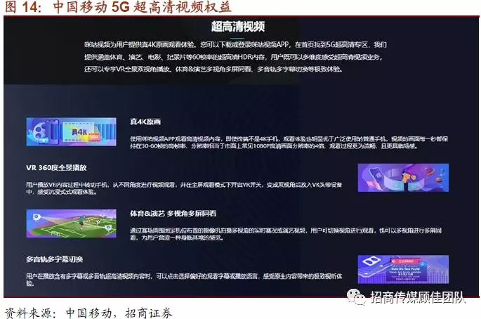 我们在之前的报告《韩国5G应用研究启示:万事俱备,只欠5G爆款型内容应用出现》中,详细研究了韩国5G时代逐步落地的各项应用,发现5G的超高速数据传输特征满足了视频行业画质的进一步升级需求,超高清视频快速发展并且进行广泛尝试。我们认为4K超高清视频将是5G时代最为明确的应用方向之一,并且有望最先迎来爆发。