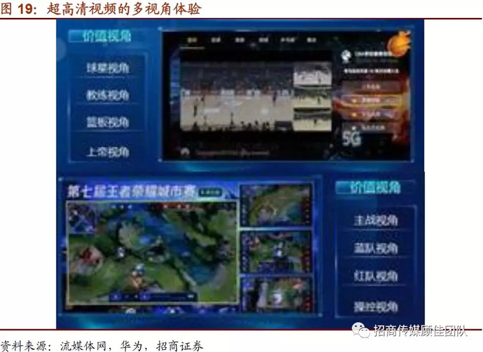 丰富视角方面,超高清内容基于5G+云全新的解决方案结合超高清自身的信息精度,将提供全新的自由视角观看体验,或将形成差异化、按需付费的新视频内容商业模式。超高清内容相对于过往的视频内容形成的最大差异点在于能够在直播或视频内容中提供多视角的选择甚至全视角的自由选择,举例来看,在一场球赛中,观众可以在上帝视角、球星视角、教练视角、篮板视角中自由切换,或是以自由视角观看明星精彩动作,或自由缩放以观看比赛精彩细节;在一场电竞比赛中,观众也可以在主战视角、A队视角、B队视角、操控视角等。
