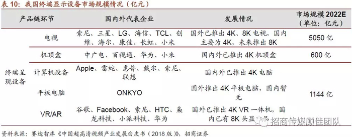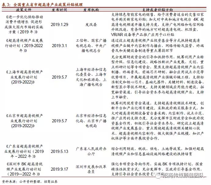 另一方面,政策支持引导抢占万亿市场机遇,硬件终端和运营商的提前布局,激发超高清视频内容需求: