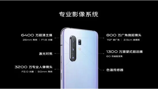 从具体配置上来看, vivoX30前置搭载了3200万像素的摄像头,后置搭载了6400万像素主摄像头+800万像素广角摄像头+3200万像素人像镜头;vivo X30 Pro前置搭载了3200万像素的摄像头,后置搭载了6400万像素主摄像+3200万人像镜头+800万广角微距镜头+1300万潜望式超远摄。