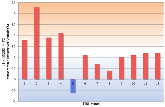 香港天文台于1月1日录得的11.4度为全年最低气温,亦是有记录以来最高的全年绝对最低气温。全年寒冷天气[4]日数只有一天,较1981-2010年气候正常值少16.1天,是自1884年有记录以来寒冷天气日数最少的年份。