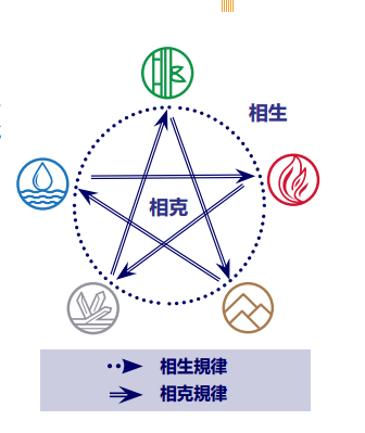 五行当中,木生火,火生土,土生金,金生水,水生木,水也是生命的基本成分;反过来,火遇水便熄,烈火能融化金属,金属可切割树木,树木通过吸收土壤养分生长壮大而克土,土能引导水的走势,因而克水。