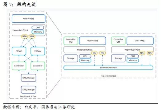超融合架构优势明显。超融合对比原先的传统三层数据中心架构,优点明显。以Nutanix产品为例,根据IDC调查,客户使用公司产品可以缩减70%左右的部署时间,并且能够轻松将公司产品接入现有计算和存储环境。