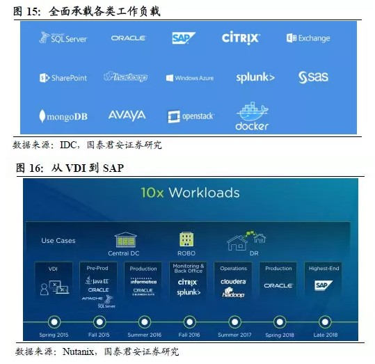 承载的工作负载不断增多。Nutanix的超融合承载的应用从2015年最早的VDI开始,到目前承载数据库、微软应用,生产应用,到2018年末经过SAP 4/HANA认证,不断拓宽承载应用范围。