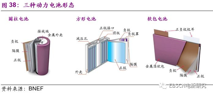 当前各电池厂的动力电池形态以圆柱、方形和软包电池为主。LG化学主要是软包电池,宁德时代和三星SDI以方形电池为主。方形电池能够生产大容量单体电池,对电芯的保护作用也优于软包电池,模组和电池包的集成较方便。软包电池采用铝塑膜包装,具有一定柔性,可适应各种形状,发生安全问题一般会鼓包而不会爆炸,不过会有漏电解液的隐患。圆柱电池规格统一,有18650、21700等型号,成本较低,但是需要配备高级的热管理系统,集成难度大。
