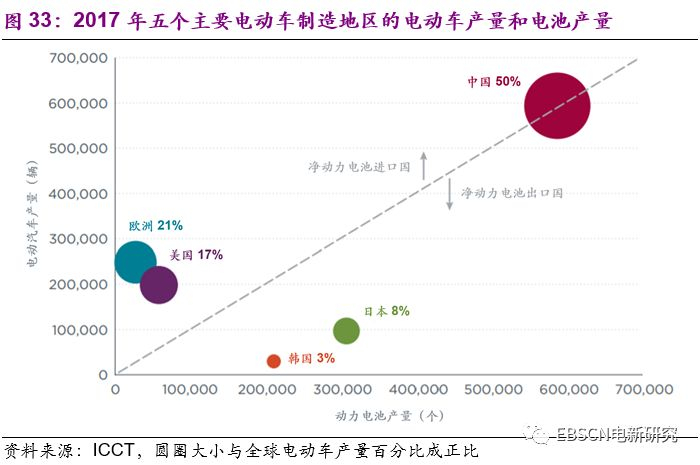 中国、日本和韩国是主要的动力电池出口地区,而欧洲和美国有巨大的电动车产量,动力电池需求缺口较大。近几年,亚洲电池巨头纷纷在欧洲建立电池工厂,以满足欧洲车企日益增长的动力电池需求。