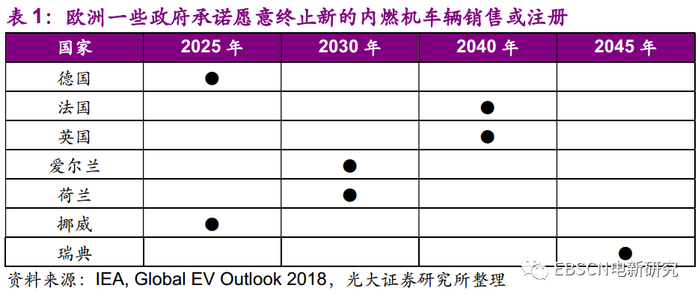 欧盟多个国家还颁布了燃油车禁售时间表,成为车企电动化转型的又一个长期驱动因素。