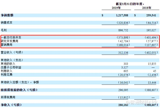 正如上述数据提到,在公司2019年的“三费”中,行政费用和营销费用达到54.2万美元,占当期总费用支出的92.7%,而其研发费用仅只有4.3万美元,属于典型的“重营销轻研发”。