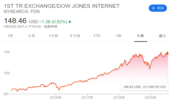 一是网络工程主题ETF(代码:FDN,全称,First Trust Dow Jones Internet Index Fund,中文译作“第一信托道琼斯互联网指数基金”,以下简称为FDN)。