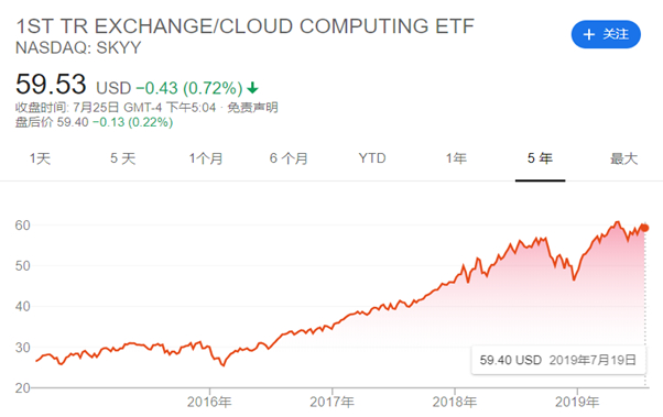 二云计算技术主题ETF(代码:SKYY,全称,First Trust ISE Cloud Computing Index Fund,中文译作“第一信托ISE云计算指数基金”,以下简称为SKYY)。