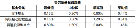 3)成本低廉:相对于其他类型的基金产品,ETF的管理费率是最低的,甚至低于传统的被动指数基金,仅为普通股票型基金的30%。