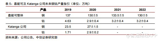 2)2019年10月,嘉能可与格林美签订5年6.12万吨的钴供应协议,其中2020-2024年间每年供应量为1.2万金属吨;