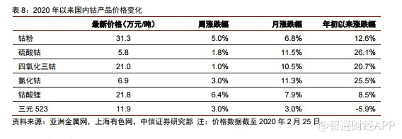 当前钴行业主线逻辑是供需格局好转带来的价格持续上涨。