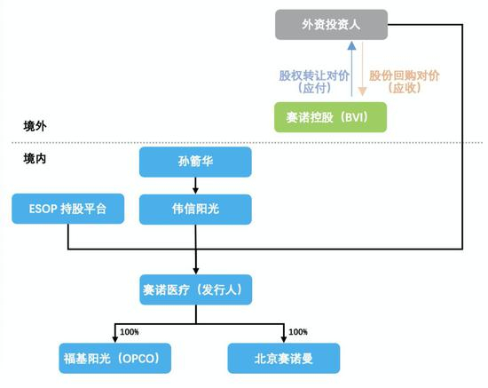 需说明的是,在拆红筹及相关重组中,赛诺医疗还进行了包括但不限于终止VIE协议、ESOP境内平移、收购福基阳光(OPCO)和境外子公司、增资等在内的一系列步骤,但因非本文关注重点,所以不再赘述。