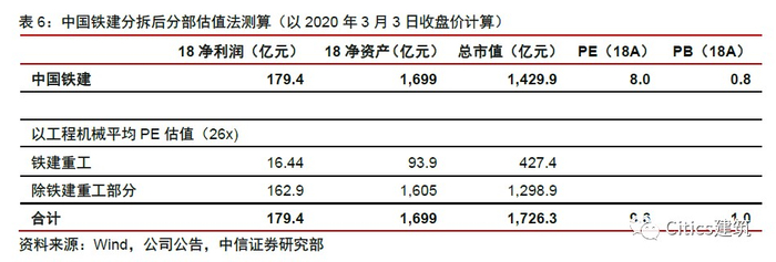 债转股提供积极增长动力,率先受益分拆政策红利。2019年12月公司公告8家机构向公司下属4家子公司增资110亿元,开启债转股第一步。静态测算下通过债转股公司负债率料将降1.1pcts至77.4%,减少财务费用约5.5亿元;同时我们认为,债转股后续的股权上翻需要PB回到1.1倍配合,因此或对公司经营层的业绩目标有正向激励,我们预计订单获取、业绩增长、现金流管理都将稳步向好。此外,公司在分拆新规落地后全市场首家推出分拆铁建重工上市科创板预案,铁建重工上市后将突破母公司融资限制,从而加大产品销售和研发力度,提升竞争优势;铁建重工料将被合理估值,带来母公司价值重估,我们以工程机械平均PE(26x)进行分部估值法重估测算,中国铁建的PE(18A)将由8.0x提升至9.6x,PB(18A)将由0.8x提升至1.0x。