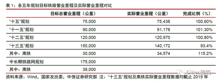从铁路建设规划进展上看,每次五年规划的末两年既是竣工通车大年,也是投资投放大年,此外为下一个五年规划蓄力,末两年亦是铁路订单大年。回顾前三次五年规划,“十五”至“十二五”均顺利完成期初设定的营业里程目标,且规划的末两年规划中的末两年铁路营业里程增量占当期五年规划总增量超60%。2019年铁路投产新线8,489公里(同比+81.3%),超额完成年初计划目标6,800公里。从历史经验来看,每个五年规划中末尾两年一般是竣工通车大年,目前距离“十三五”规划的15万公里仍有1万公里左右的空间,我们预计2020年在建铁路项目的进度料将加快。