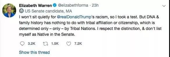 为了证明自己,后来沃伦拿出一份DNA检测报告,证实自己确有美洲土著人血统,并强调自己做DNA鉴定的动机并非要冒充部落成员,而是不愿坐视特朗普的种族歧视。