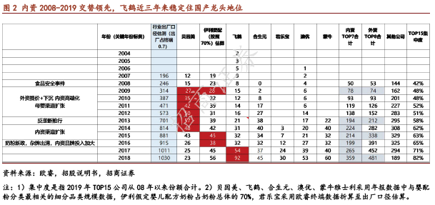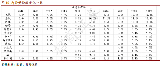 ① 历史事件影响减弱。08年食品安全事件过去十年之后,在品牌信任感逐步回归的过程中,内资在产品、渠道、营销等方面的优势也会逐步带来更多的用户。