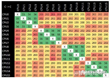 下表是核心到核心的同步延迟(以纳秒为单位)。