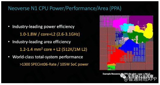 Graviton2的潜力当然是由新的N1内核实现的。我们已经看到了Cortex-A76 在去年的移动系统级芯片上的惊人表现,N1微架构有望带来更好的性能和服务器级功能,所有同时保持Arm公司产品在移动领域取得成功的关键——高能源效率。N1内核保持非常纤薄和高效,在Graviton2中实现1MB L2缓存,预计只用到1.4mm²的硅空间,并且在亚马逊新芯片到达的2.5GHz频率下,每个内核具有约1W的出色电源效率。。