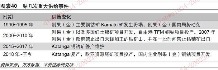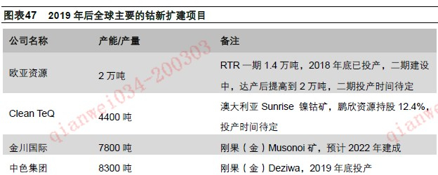 (2)钴供给大幅增加的风险。尽管随着价格的大幅下跌,钴资源开发积极性受影响,但如果未来新项目建设投产较多,且现有厂商供给收缩低于预期,钴的供给可能重新转变为过剩,从而使行业继续处于较为低迷的运行状态;