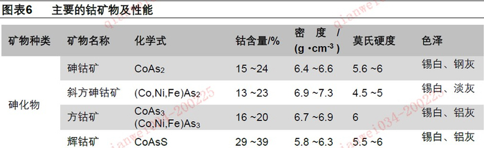 目前全球有100多种含钴的矿物,其中以钴为基本矿物的种类超50种,但由于钴存在的状态较多,矿石的品位也较低,因此真正具有经济价值的矿物有限,主要是砷化物、硫化物和氧化物。从矿床分布看,全球钴资源主要包括大洋的多金属结核和富钴结壳,而陆地的钴矿主要包括沉积型层状铜钴矿床、岩浆型硫化镍铜钴铂族矿床、热液型钴矿床、风化型红土镍钴矿床四类。