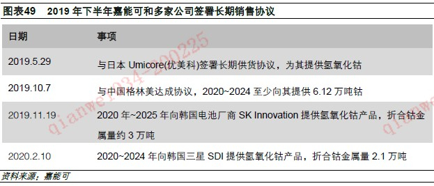 面对Katanga库存增加,嘉能可从产销两端化解。生产端,随着2020年下半年钴干燥设备正常运转,因干燥能力不足导致被动增库存将得到解决。销售端,嘉能可加强了市场规划,2019年下半年以来,先后同格林美、SK Innovation以及三星SDI等下游客户签署了长期销售协议,加之Mutanda停产,预计Katanga较高库存将能得到化解。