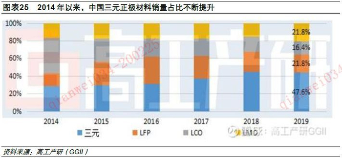(3)2020~2025年三元以及高镍化三元体系电池在动力电池占比有较大提高;
