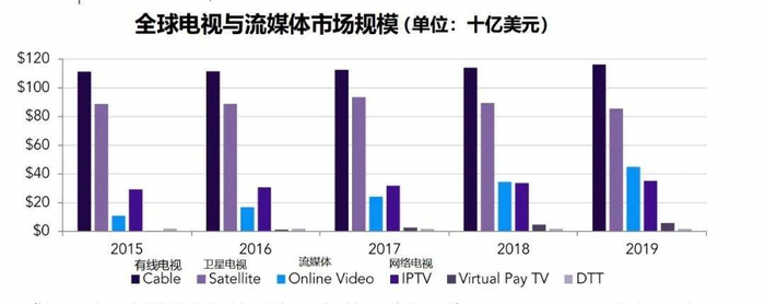 但是到目前为止,流媒体创造出的市场规模其实远远不及有限电视、卫星电视。
