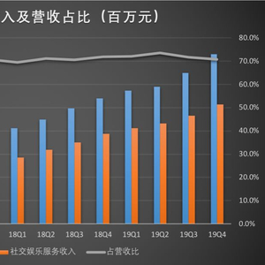 从财务数据来看,腾讯音乐2019年Q4的 营收和利润表现都超出了预期。财报数据显示,腾讯音乐2019年Q4总营收72.9亿元,同比增幅为35.1%,超出华尔街分析师给出的70.8亿元预期。归属于公司股东的净利润为10.4亿元,非国际财务报告准则的每股美国存托股票摊薄收益为人民币0.80元,超出分析师预期。