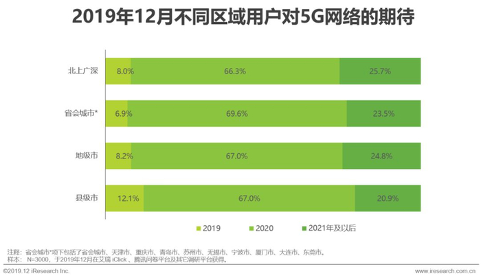 调研结果显示,用户对5G的认知度高,认为5G对生活的影响大。76.6%的用户希望在2021年之前用上5G网络。