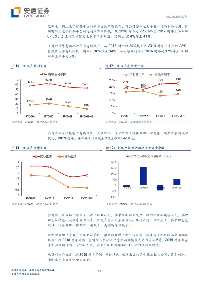 Canmake品牌是公司销售收入的主要来源,收入占比提升至95%。根据招股书披露,公司的销售收入主要来自于Canmake、 Country& Stream、FIANCEE三个品牌,其中2016-2018财年Canmake的销售收入占比分别为93%、93%、84%;2019财年上半年,Canmake销售收入占比提升至94.6%。