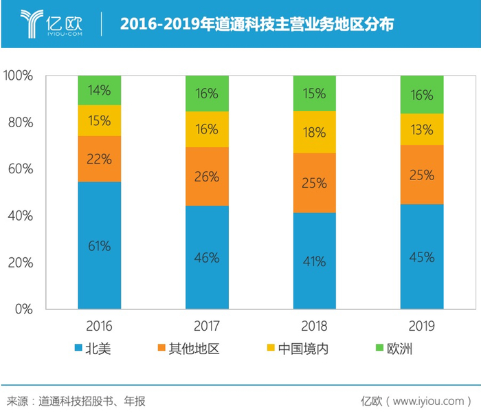 2005年底,道通科技推出了首款读码卡产品,在施耐宝的大本营美国市场与之正面竞争。凭借便宜了30%的价格优势和不用培训就能上手的简易操作,道通科技不仅打开了美国市场,而且业务越做越大,2019年其营业收入已经接近12亿元。时至今日,北美仍然是道通科技的第一大市场,营收占比长期超过四成。