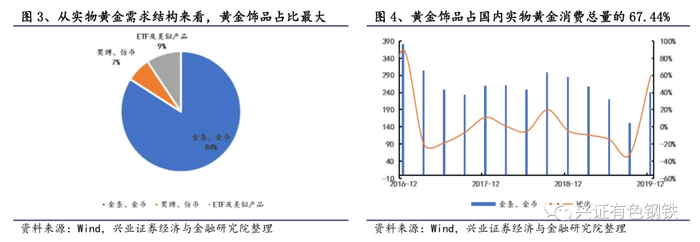 ②交易成本(费率):黄金饰品的主要成本在于两方面,其一是饰品存在工艺费加成,属于投资黄金以外的成本;其二是由于饰品为实物,磨损、腐蚀等产生的金消耗较大。
