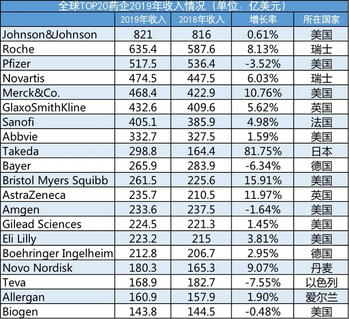 2019年全球TOP 20药企大洗牌,亚洲药企首次跻身前十,生物类似药威胁来袭!