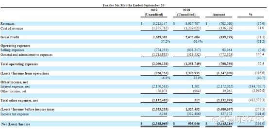 公司于4月22日公布了其截至2019年9月30日六个月财报,期内收入下降了70万美元,降幅为17.9%,从上一财年同期的391.77万美元降至321.51万美元。纯利方面,期内公司由2018年同期的99.5万转亏234.8万美元。